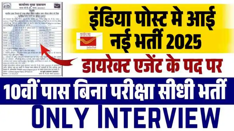 India Post Direct Agent Recruitment 2025 : इंडिया पोस्ट डायरेक्ट एजेंट भर्ती 2025 नोटिफिकेशन जारी, बिना परीक्षा डायरेक्ट इंटरव्यू से होगा चयन