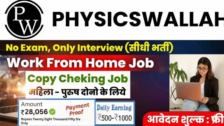 PhysicsWallah Work From Home Recruitment 2025 के लिए कॉपी चेकिंग की भर्ती निकली है महिला और पुरुष आवेदन शुरू करे सीधी भर्ती।